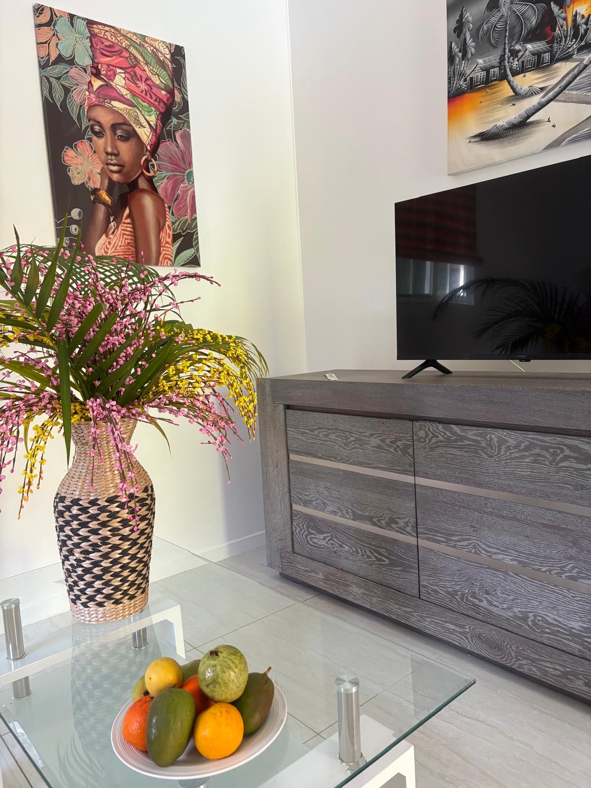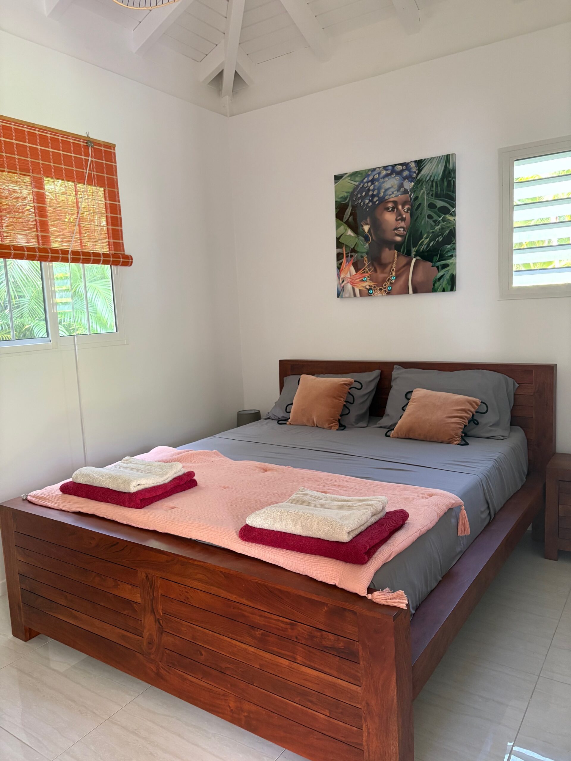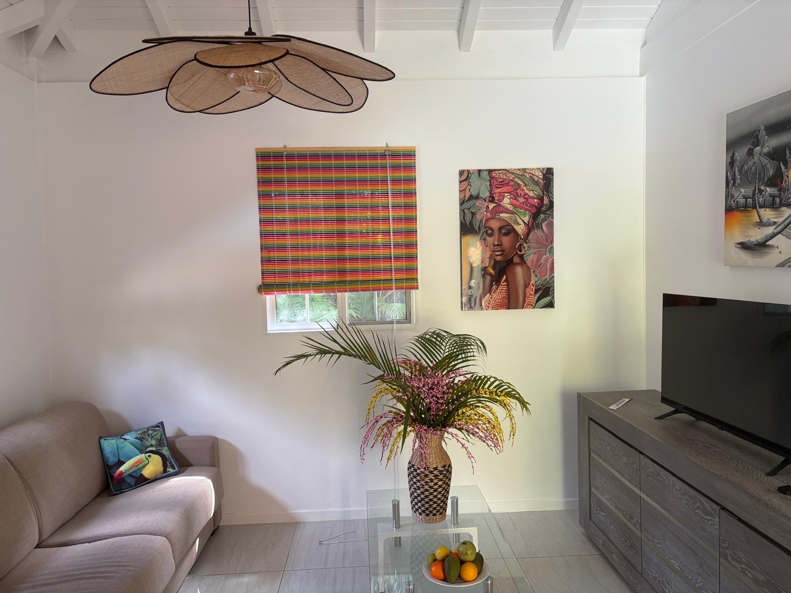 La décoration de la villa est inspirée et en harmonie avec la Guadeloupe. Son style est contemporain mais avec quelques touches d’originalité. Son plafond en cathédrale, l’extérieur habillé de bois et les couleurs vives retranscrivent l’ambiance des Caraïbes en lui apportant un cachet supplémentaire.